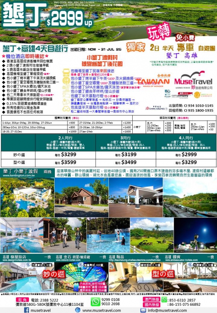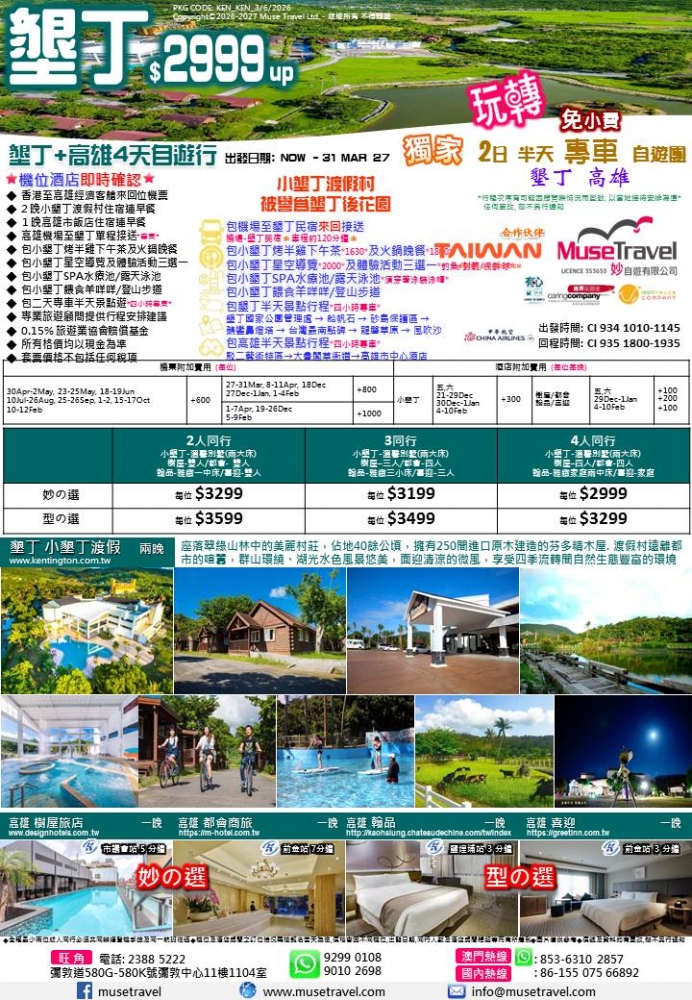 ◆ 2 晚小墾丁渡假村住宿連早餐