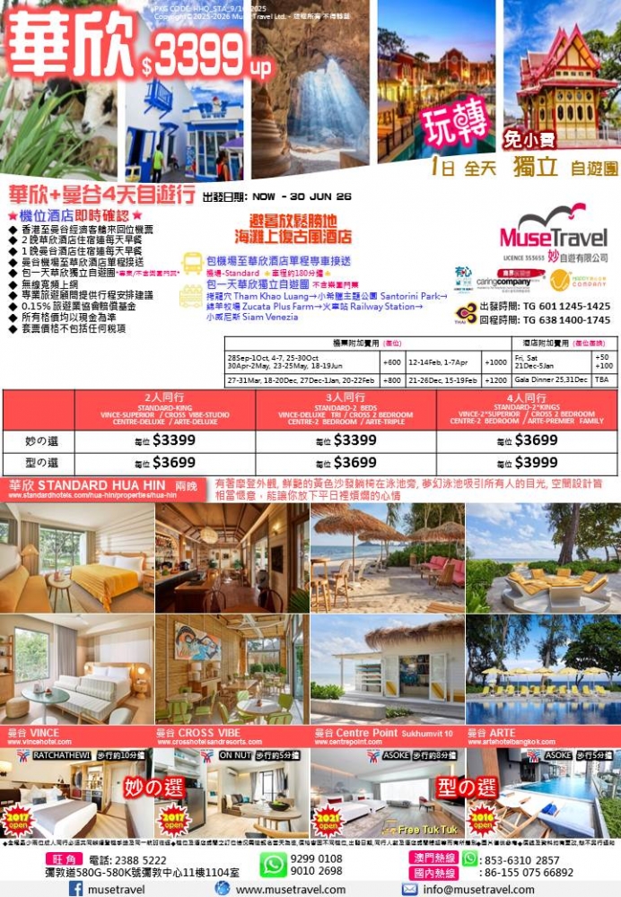 ◆ 包一天華欣獨立自遊團*專車/不含樂園門票*