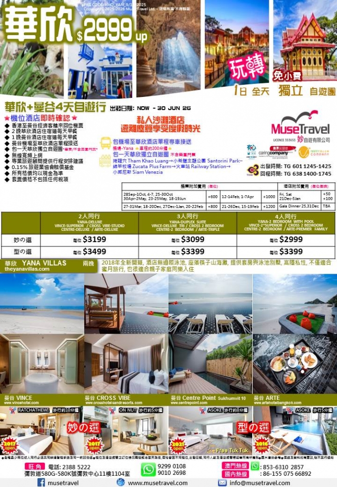 ◆ 包一天華欣獨立自遊團*專車/不含樂園門票*