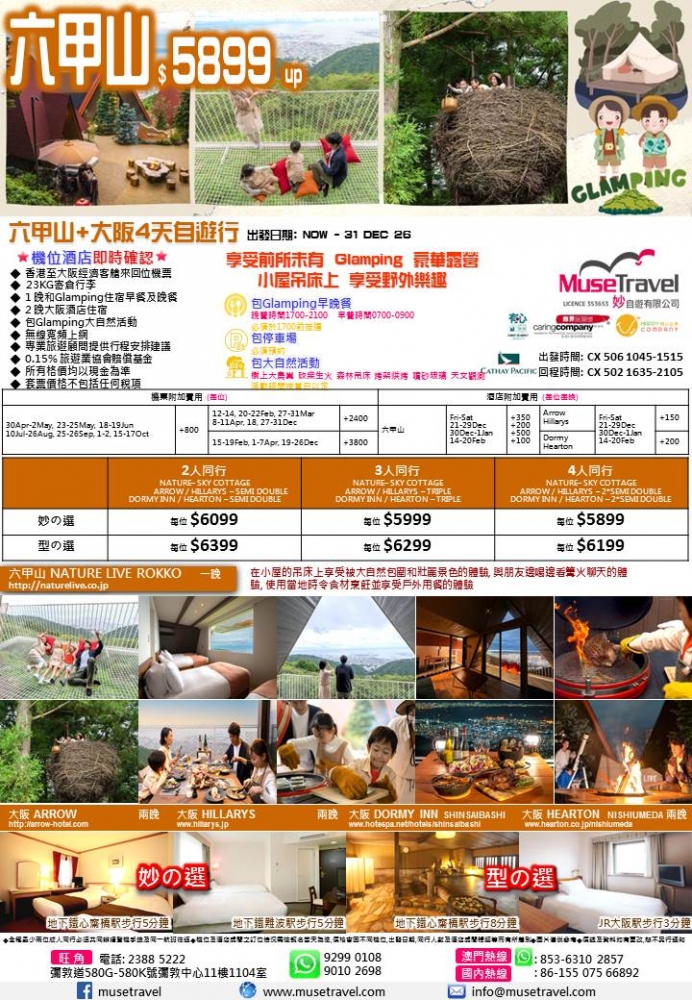 六甲山-享受前所未有 Glamping 豪華露營 小屋吊床上 享受野外樂趣