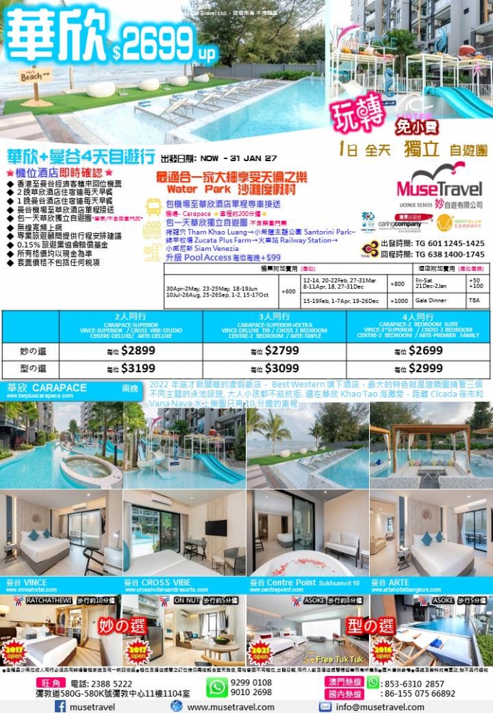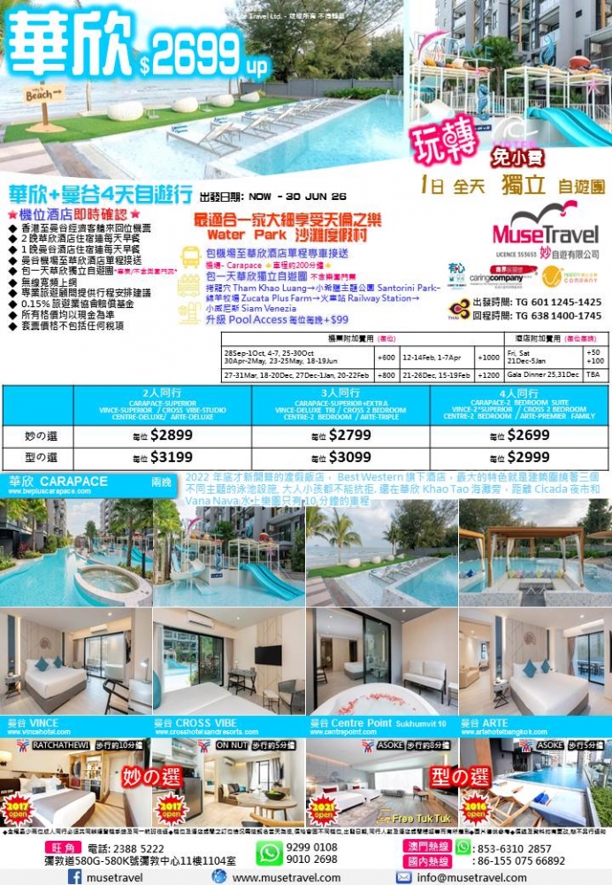 ◆ 包一天華欣獨立自遊團*專車/不含樂園門票*