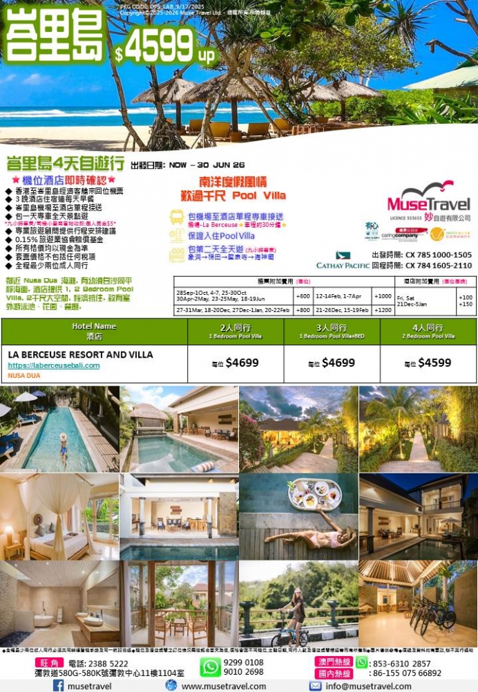 *九小時專車/司機小費需當地收取:每人美金$5*
