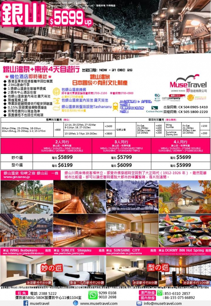 ◆ 1 晚銀山溫泉住宿連早晚餐