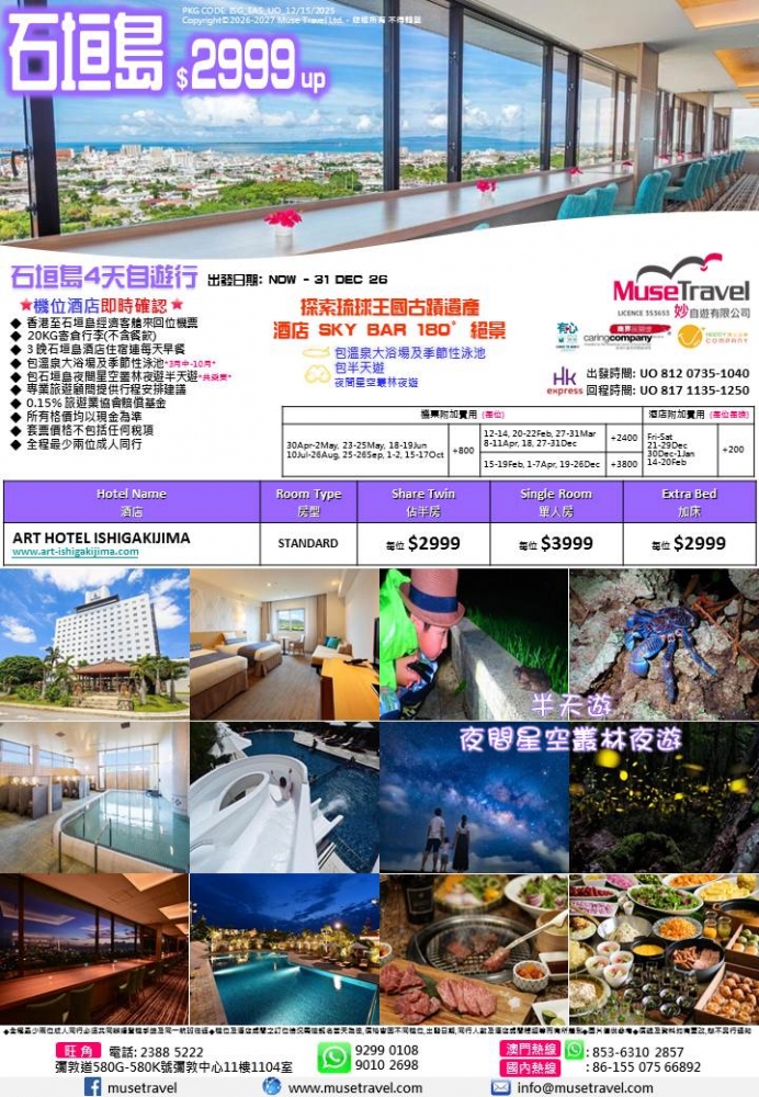 ◆ 3 晚石垣島酒店住宿連每天早餐