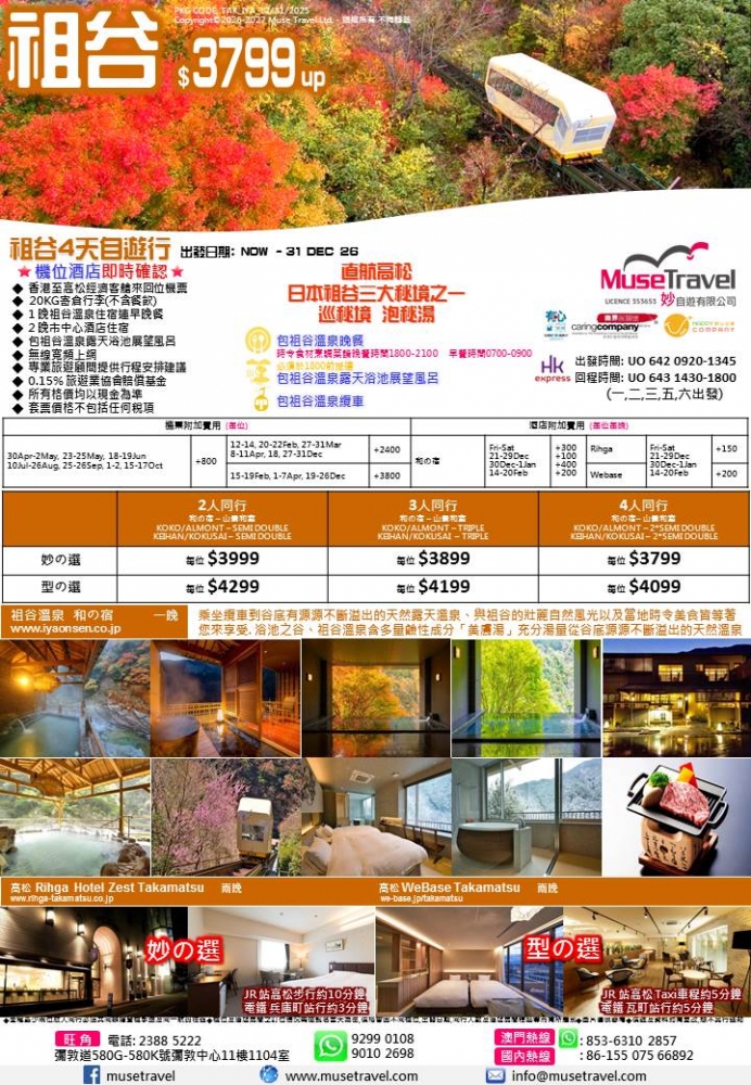 ◆ 香港至高松經濟客艙來回位機票