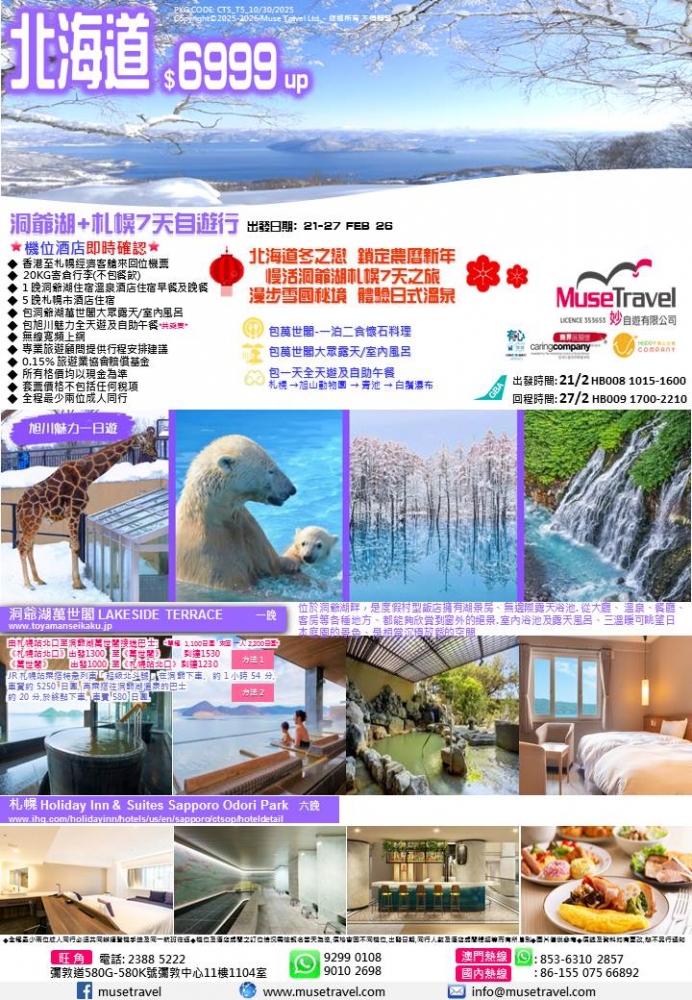 北海道-鎖定農曆新年 慢活洞爺湖札幌7天之旅 漫步雪國秘境 體驗日式溫泉