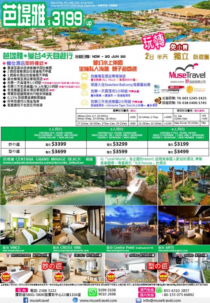 ◆ 2 晚芭堤雅酒店住宿連每天早餐