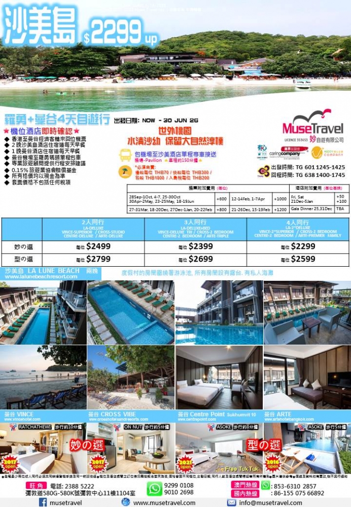 ◆ 2 晚沙美島酒店住宿連每天早餐