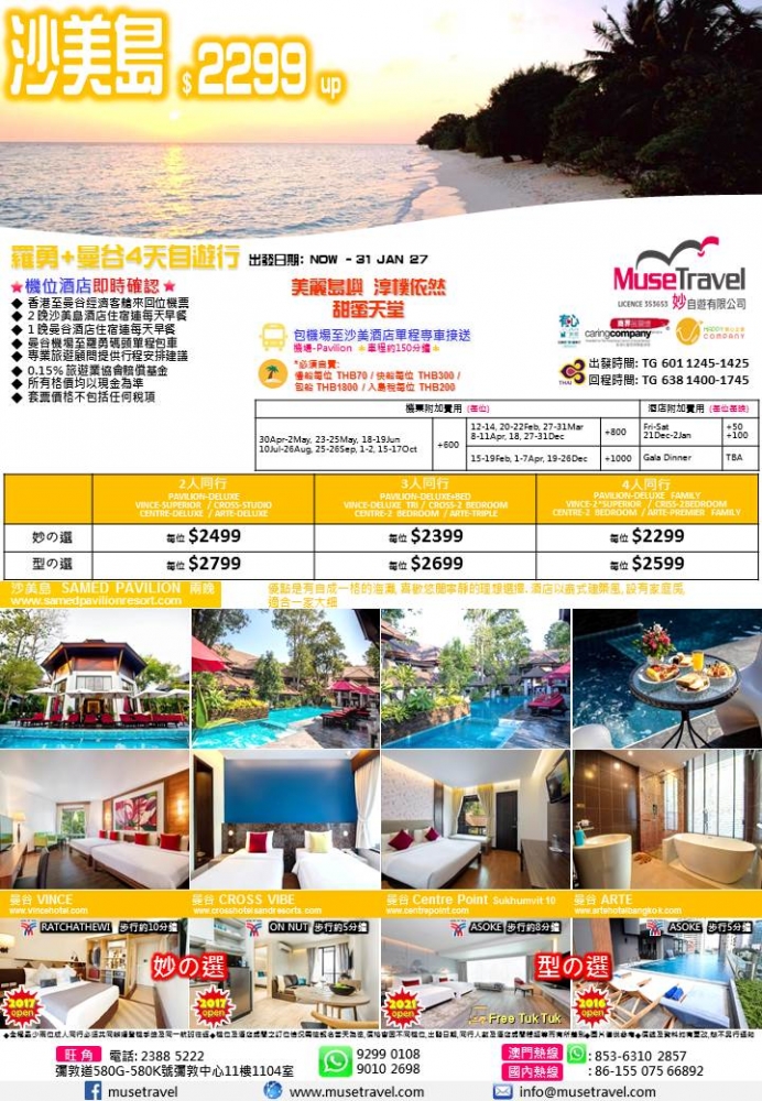 ◆ 2 晚沙美島酒店住宿連每天早餐