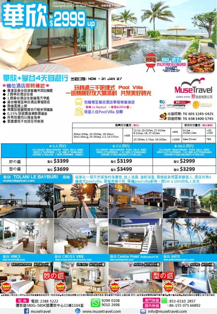 ◆ 2 晚華欣酒店住宿