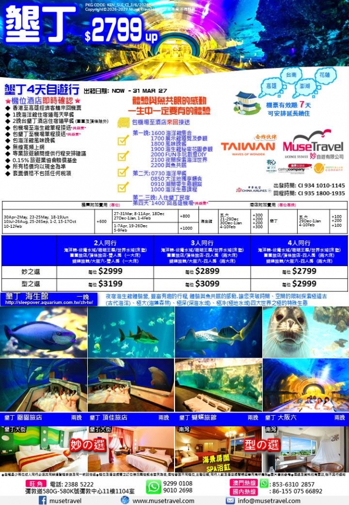 ◆ 2晚台墾丁酒店住宿連早餐 (圍園及頂佳除外)