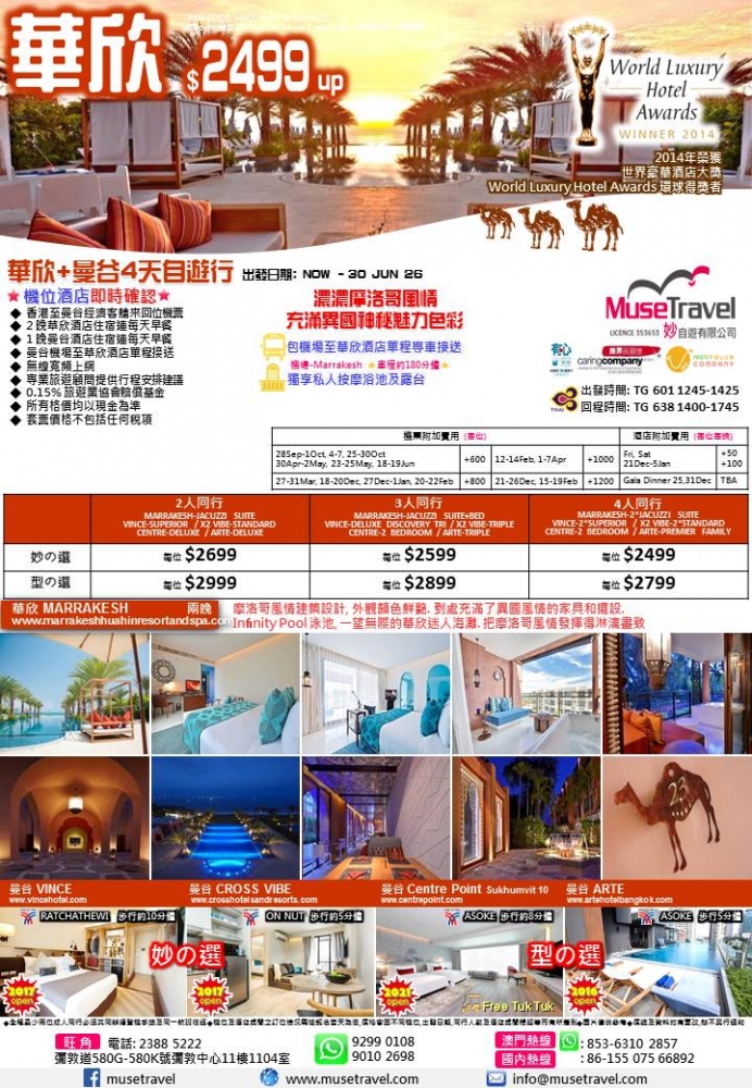 ◆ 1 晚曼谷酒店住宿連每天早餐