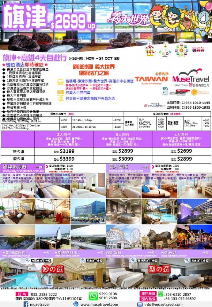 ◆ 全程最少兩位成人同行