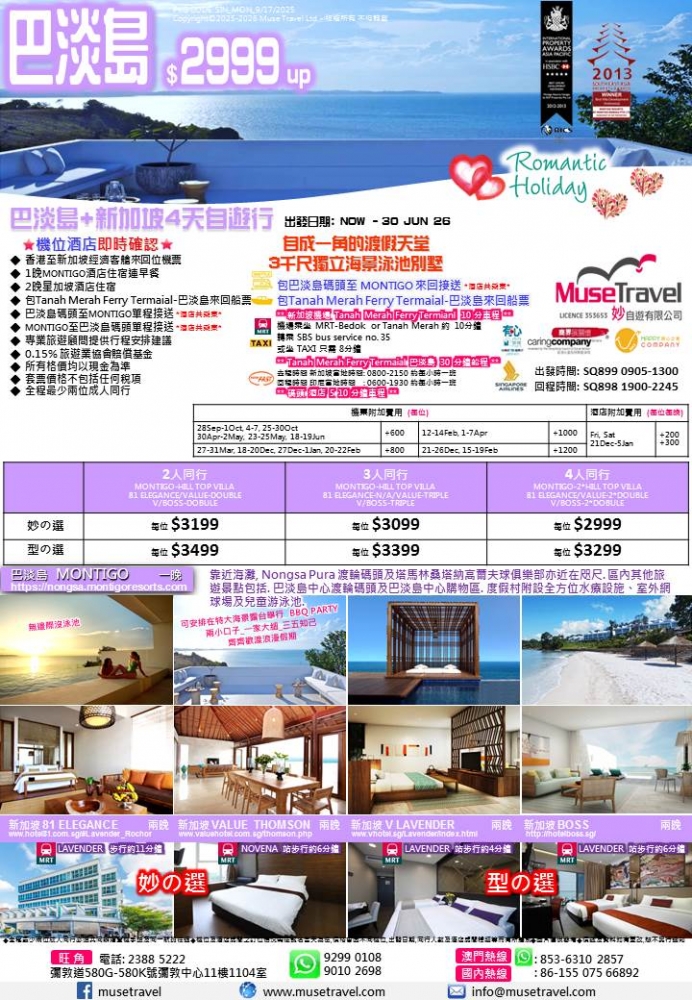 ◆ 巴淡島碼頭至MONTIGO單程接送 *酒店共乘車*