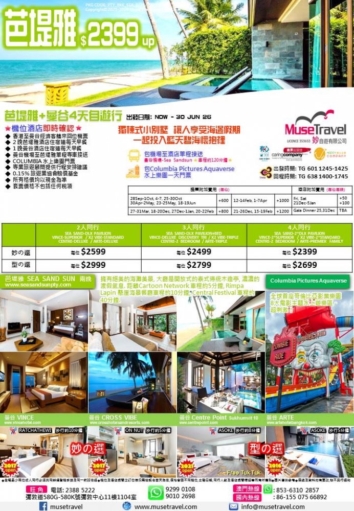 ◆ 2 晚芭堤雅酒店住宿連每天早餐