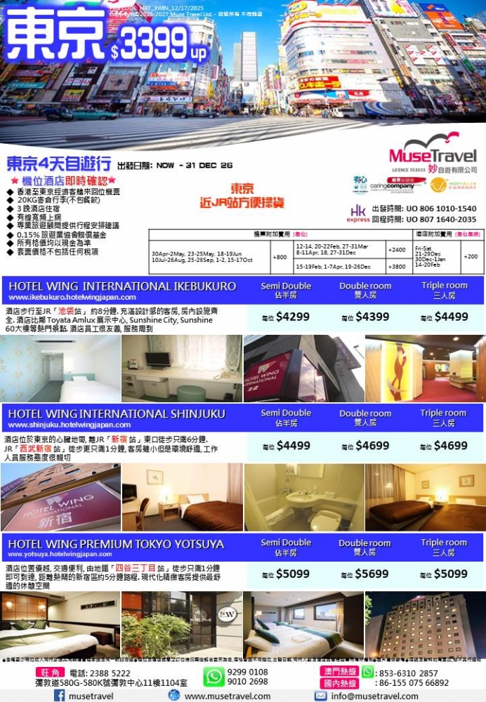 東京-Wing 型格集團旗下酒店 近JR站方便掃貨