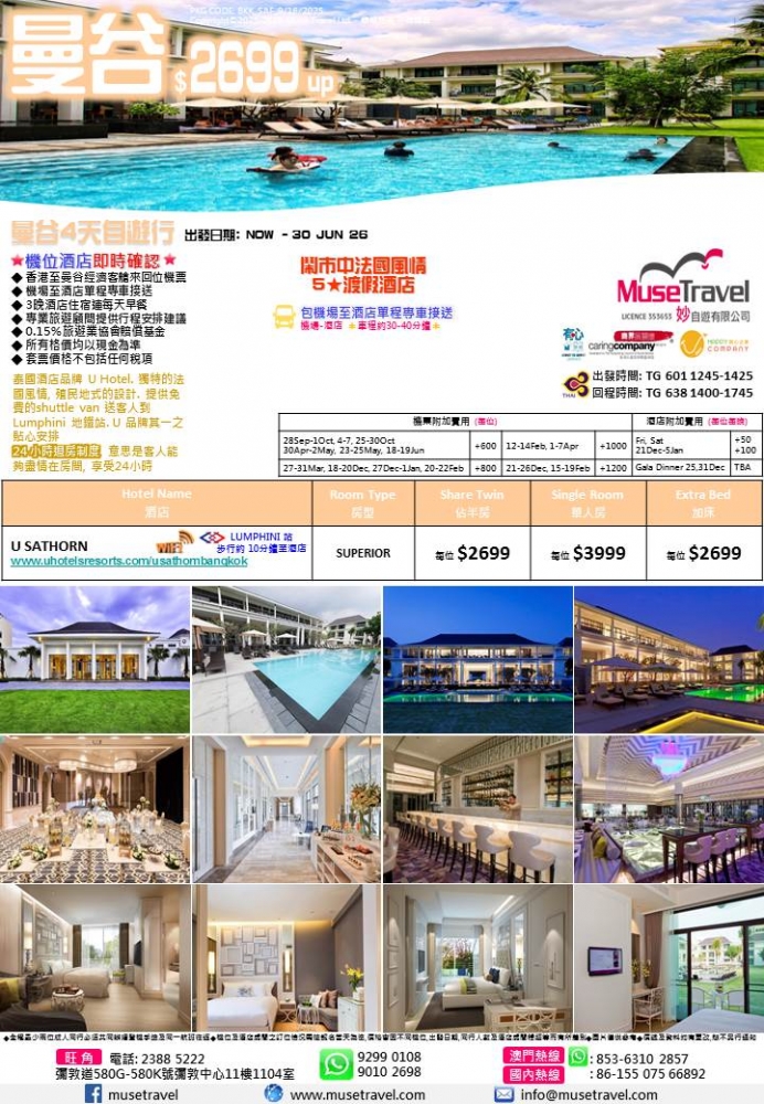 Lumphini BTS-鬧市中法國風情 5★渡假酒店
