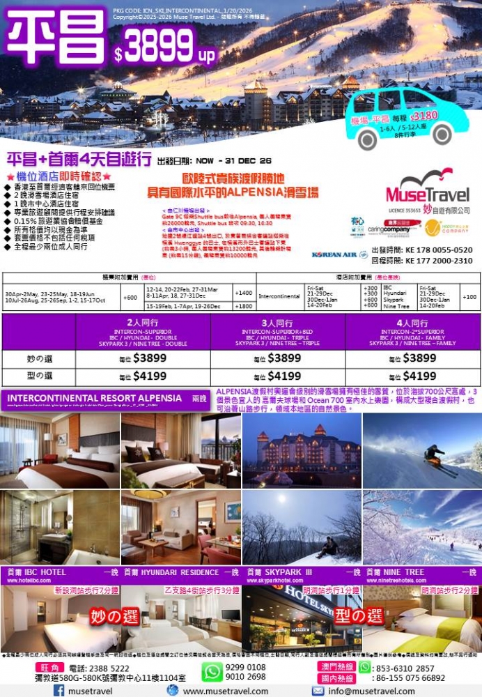 ◆ 2 晚滑雪場酒店住宿