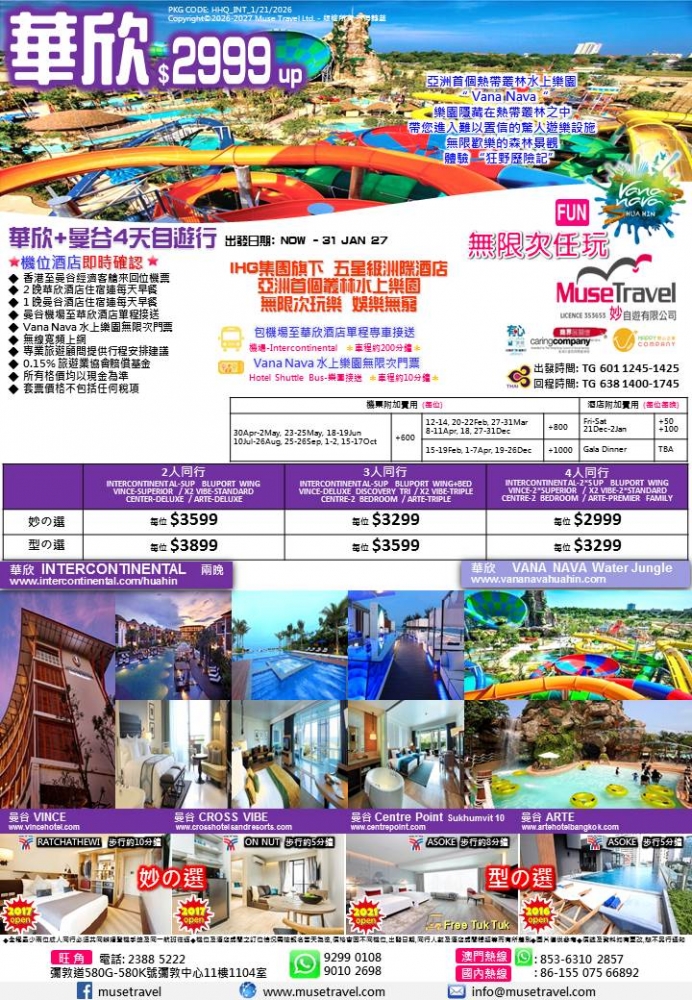 Vana Nava x IHG集團旗下 五星級洲際酒店 亞洲首個叢林水上樂園 無限次玩樂