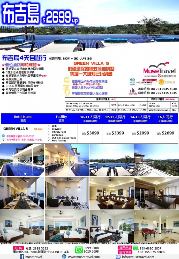 ►8 Bedroom ►無線網路 ►專屬管家廚師傭人貼心服務 ►免費泊車 ►海景 ►無邊際泳池