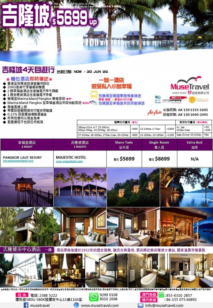 ◆ 1 晚吉隆坡酒店住宿連每天早餐