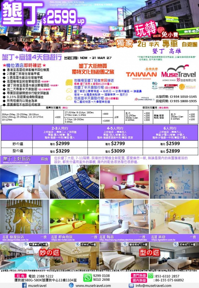 ◆ 墾丁民宿至高雄市飯店單程接送 *共乘車*