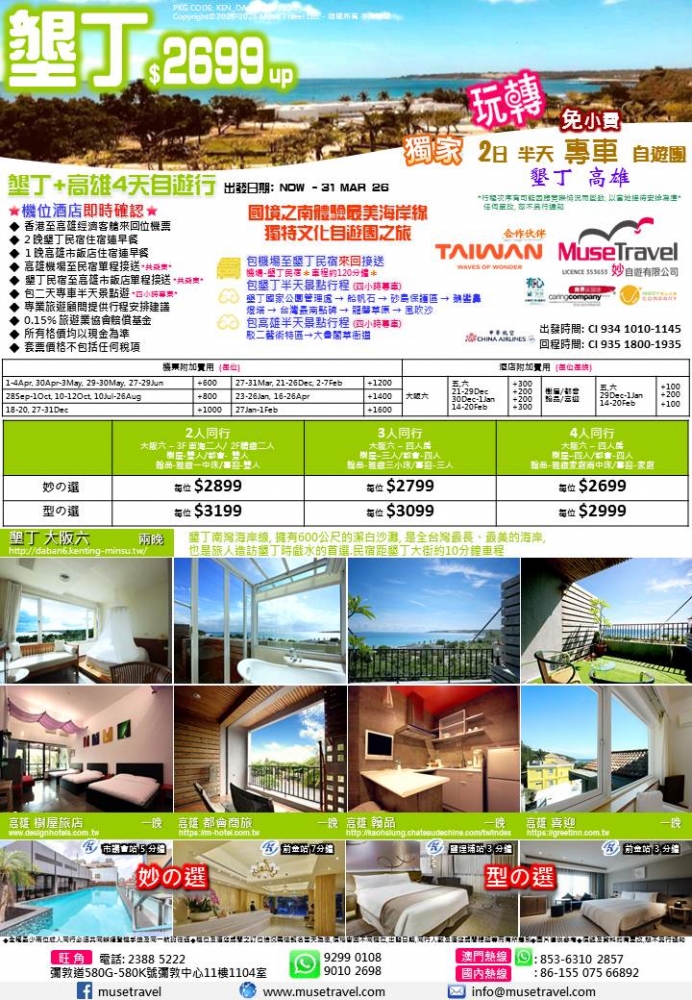 ◆ 墾丁民宿至高雄市飯店單程接送 *共乘車*