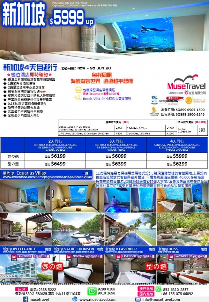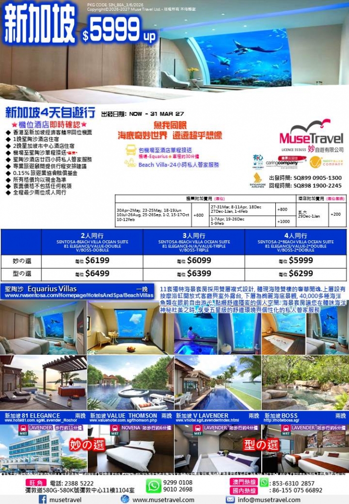 ◆ 香港至新加坡經濟客艙來回位機票