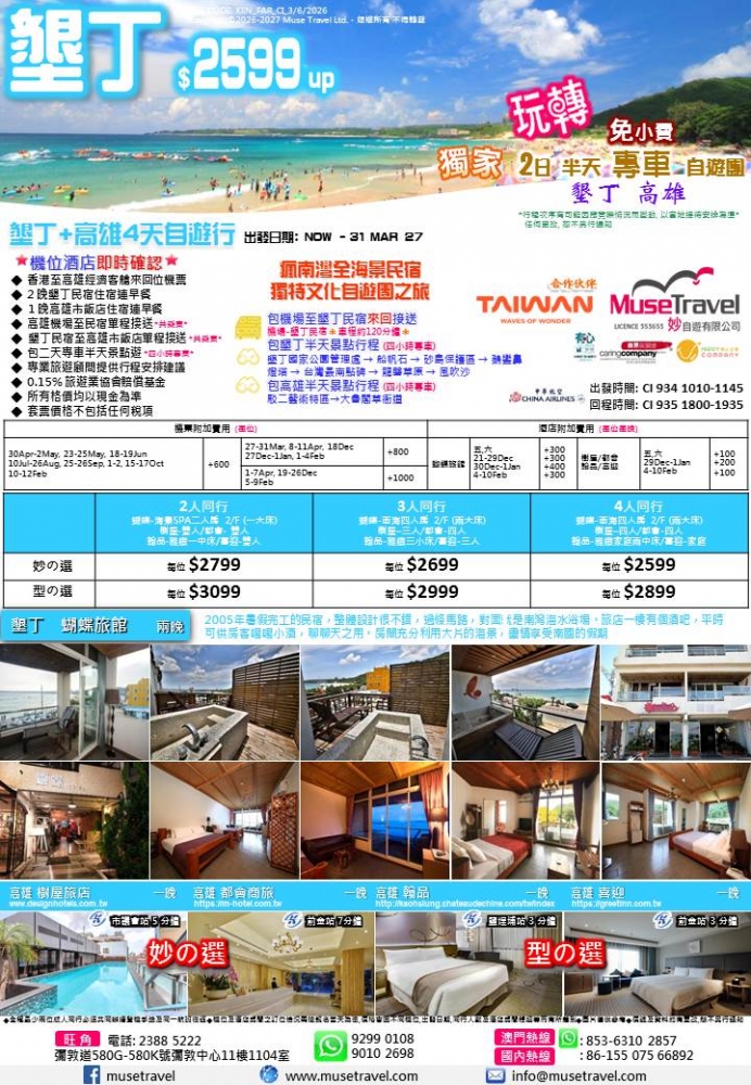 ◆ 墾丁民宿至高雄市飯店單程接送 *共乘車*