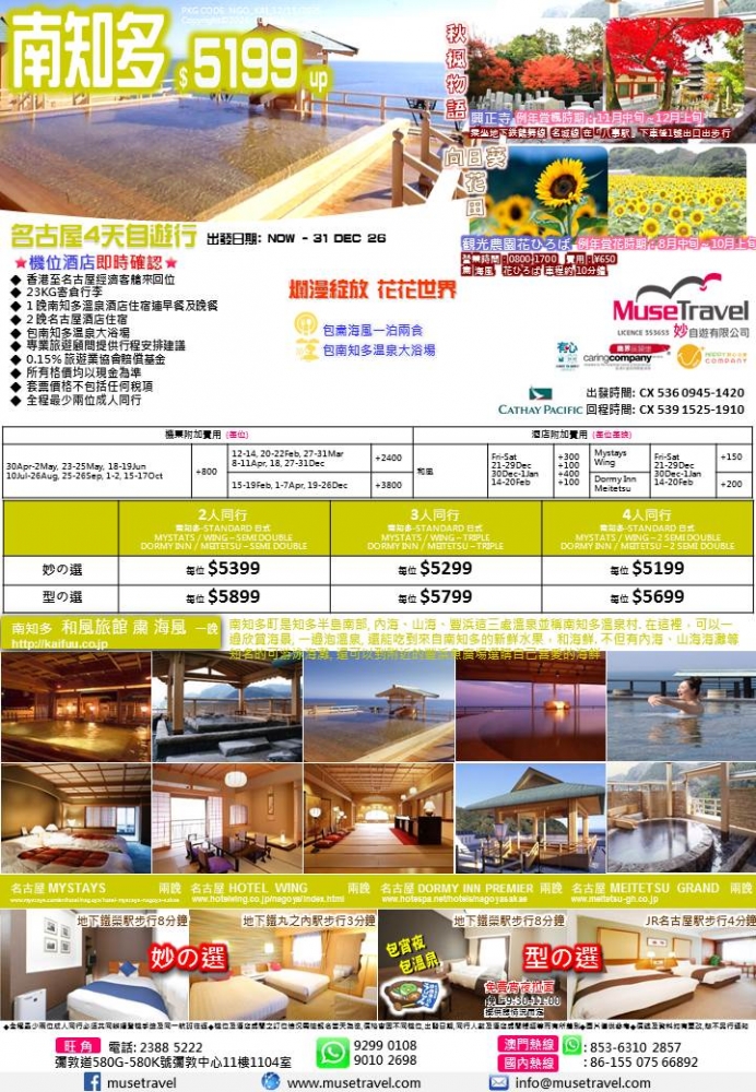 ◆ 香港至名古屋經濟客艙來回位