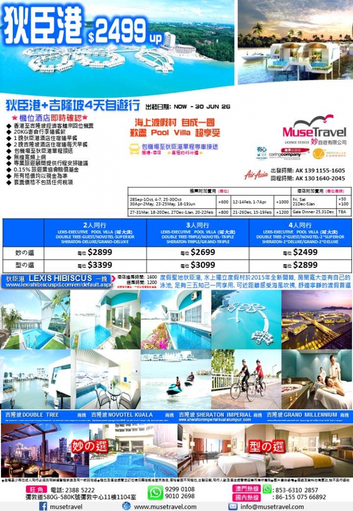 ◆ 香港至吉隆坡經濟客艙來回位機票