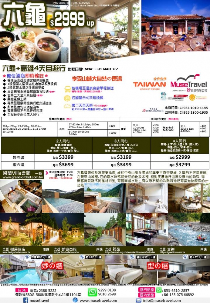 ◆ 全程最少兩位成人同行