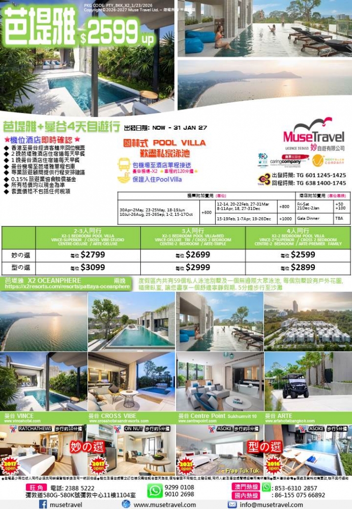 ◆ 2 晚芭堤雅酒店住宿連每天早餐