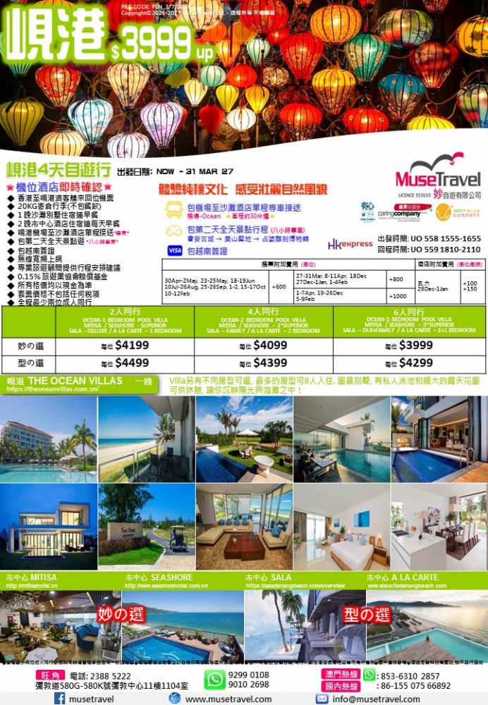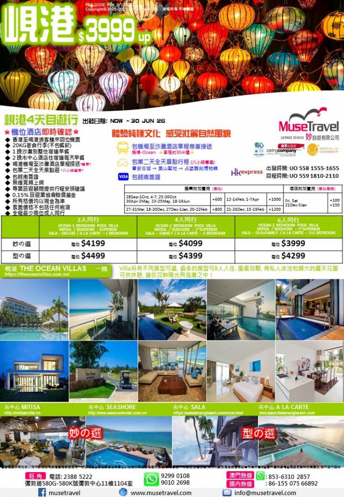 ◆ 香港至峴港濟客艙來回位機票