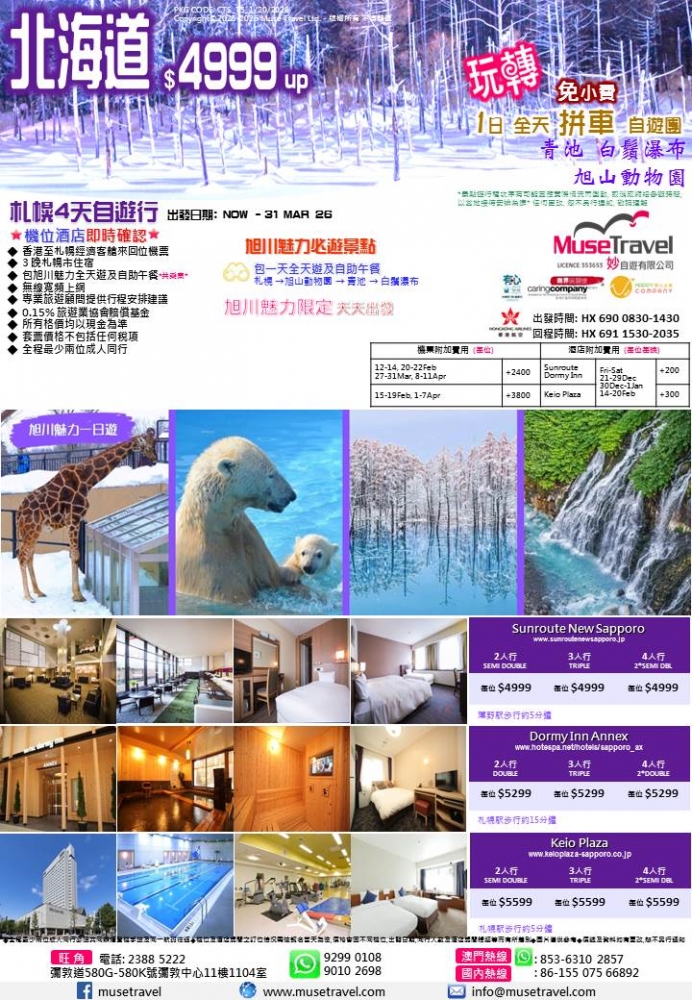 ◆ 包旭川魅力全天遊及自助午餐*共乘車*