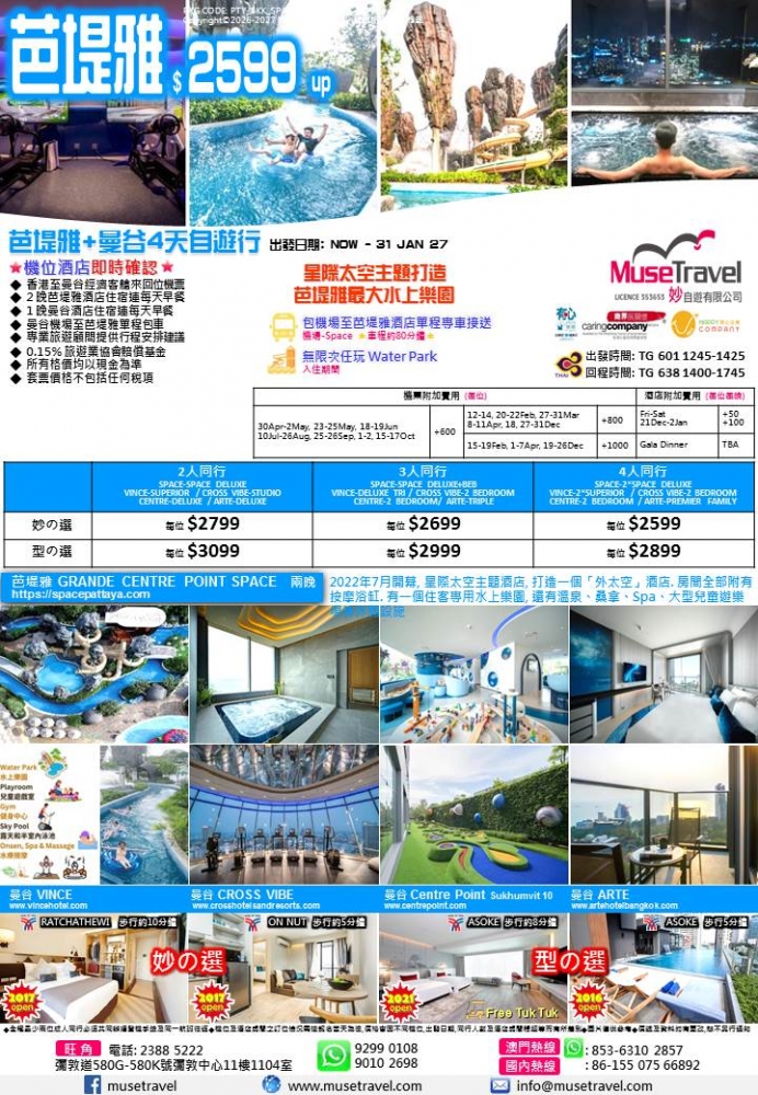◆ 2 晚芭堤雅酒店住宿連每天早餐