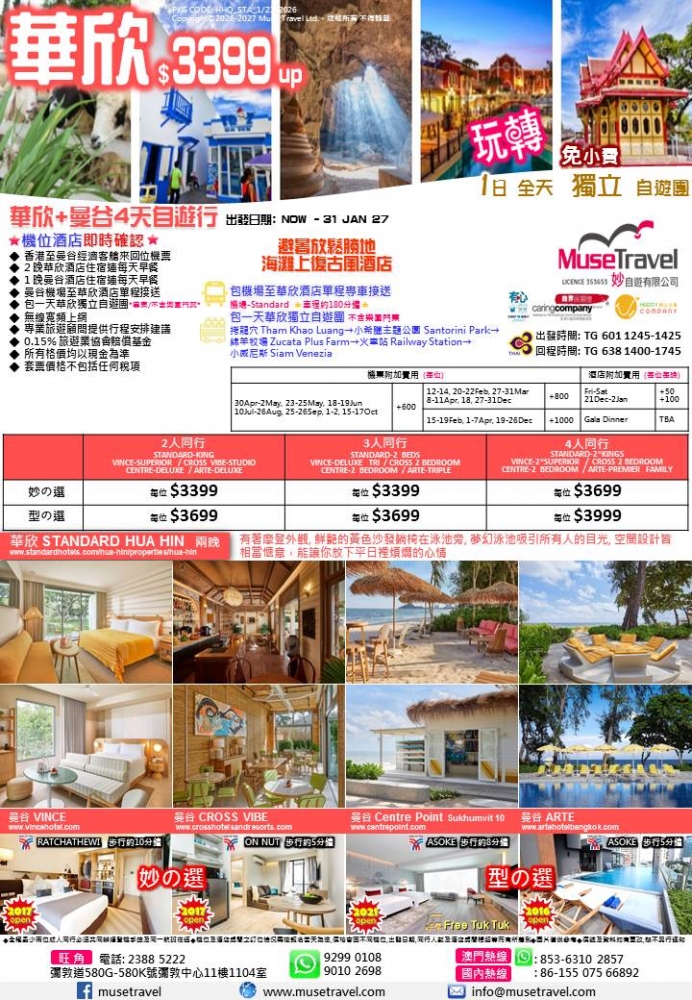 ◆ 包一天華欣獨立自遊團*專車/不含樂園門票*