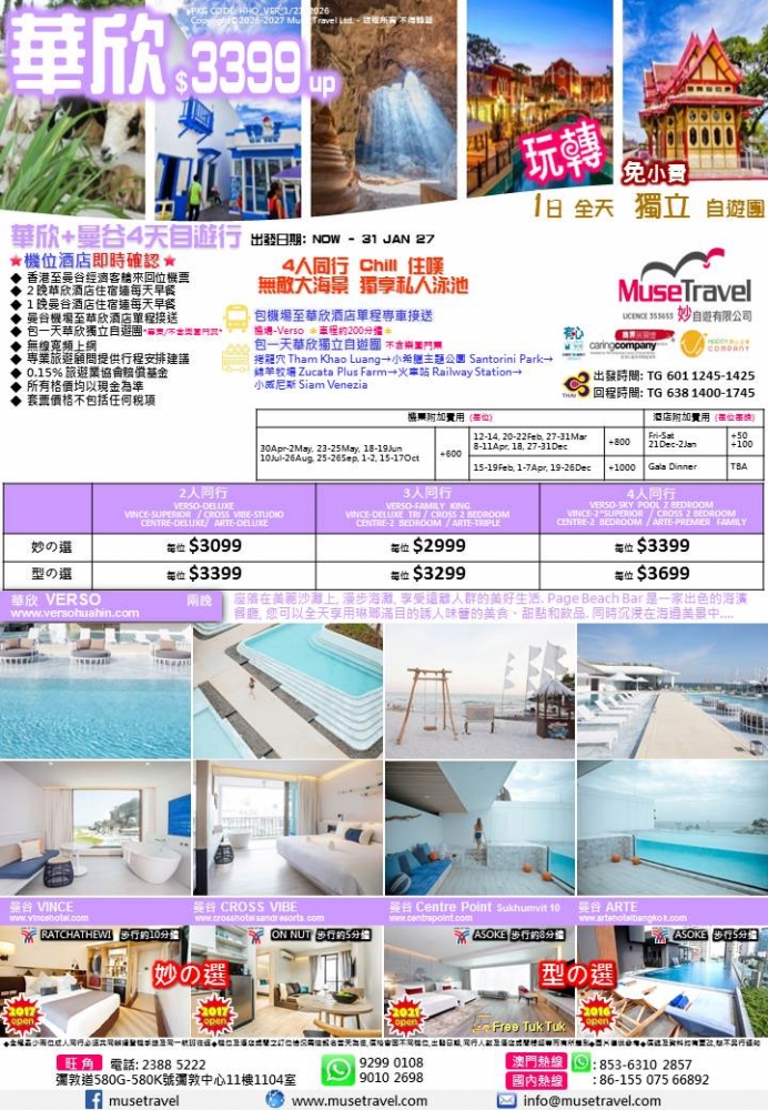 ◆ 包一天華欣獨立自遊團*專車/不含樂園門票*