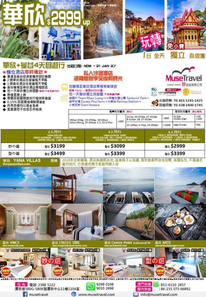 ◆ 包一天華欣獨立自遊團*專車/不含樂園門票*