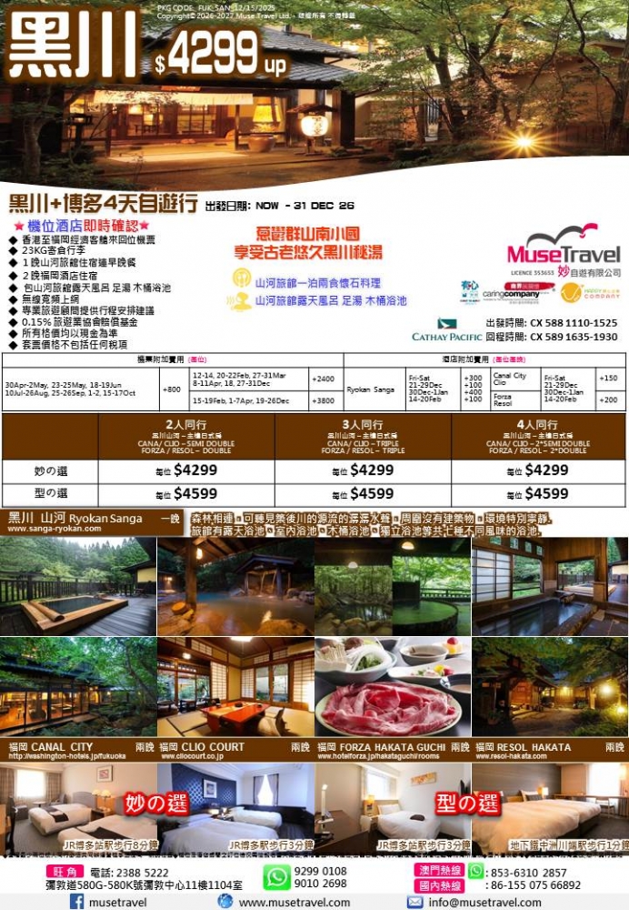 ◆ 香港至福岡經濟客艙來回位機票