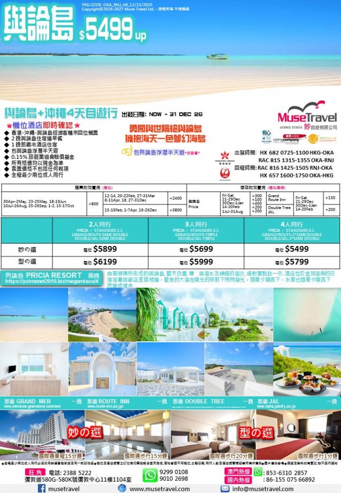 ◆ 香港-沖繩-與論島經濟客艙來回位機票