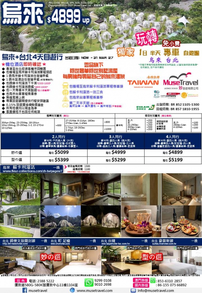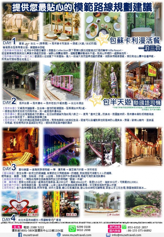 ◆ 包機場至烏來蘇卡利漫活單程接送