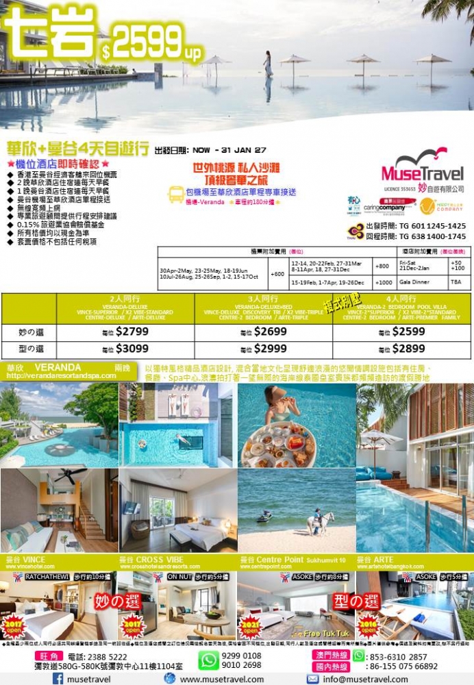 ◆ 2 晚華欣酒店住宿連每天早餐