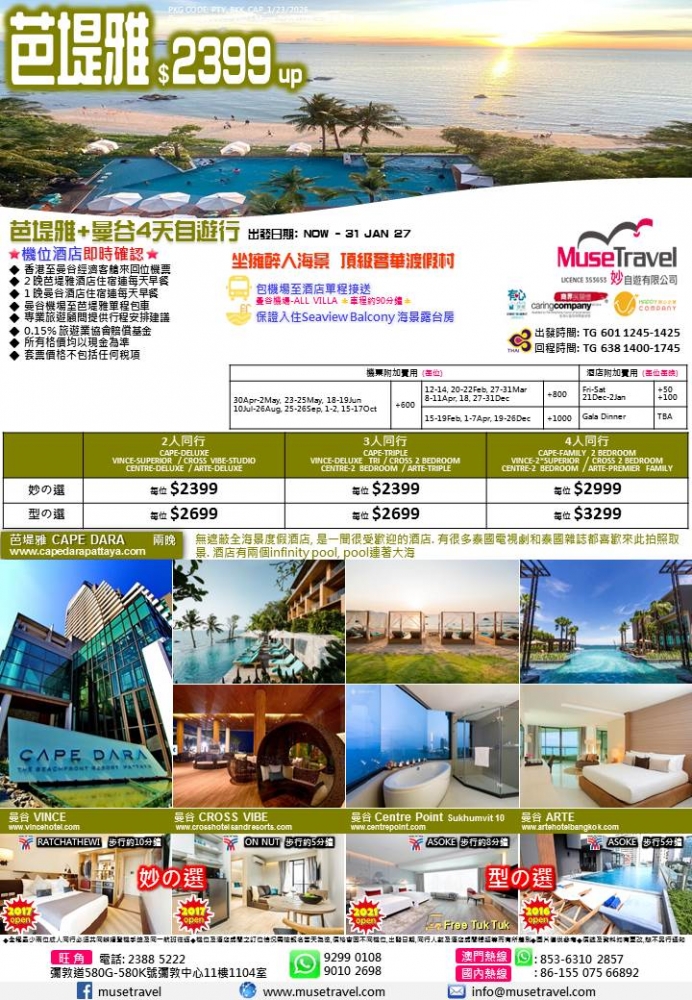 ◆ 2 晚芭堤雅酒店住宿連每天早餐