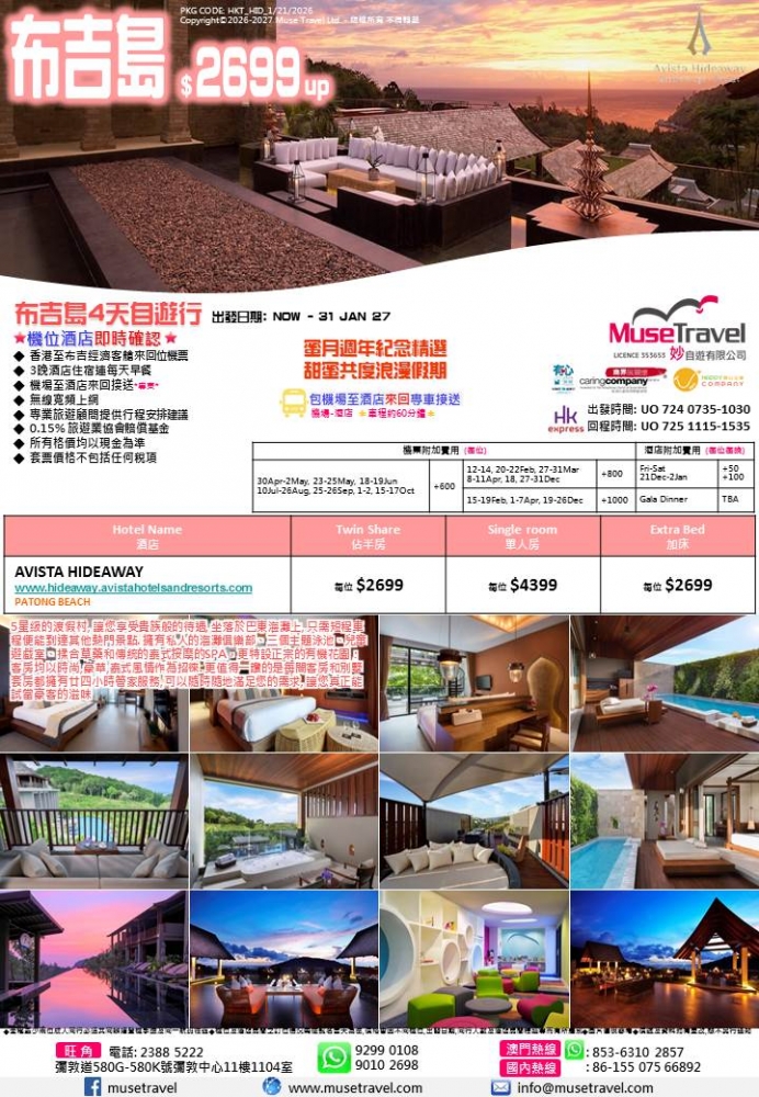 ◆ 香港至布吉經濟客艙來回位機票