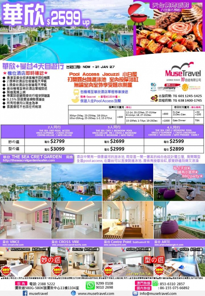 ◆ 2 晚華欣酒店住宿連每天早餐