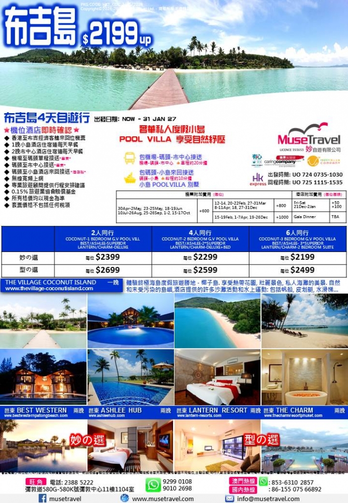 ◆ 1晚小島酒店住宿連每天早餐