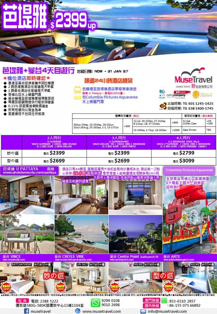 ◆ 2 晚芭堤雅酒店住宿連每天早餐