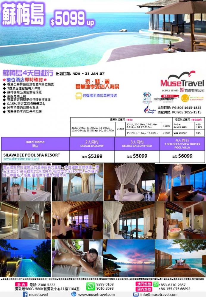 ◆ 香港至蘇梅島經濟客艙來回位機票