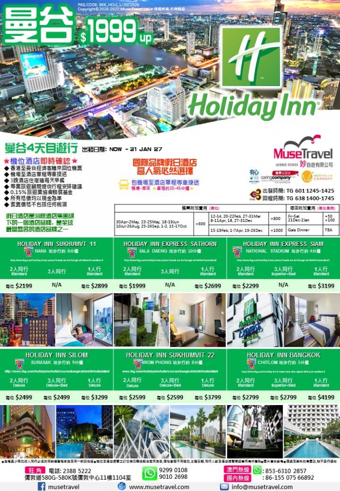 ◆ 香港至曼谷經濟客艙來回位機票